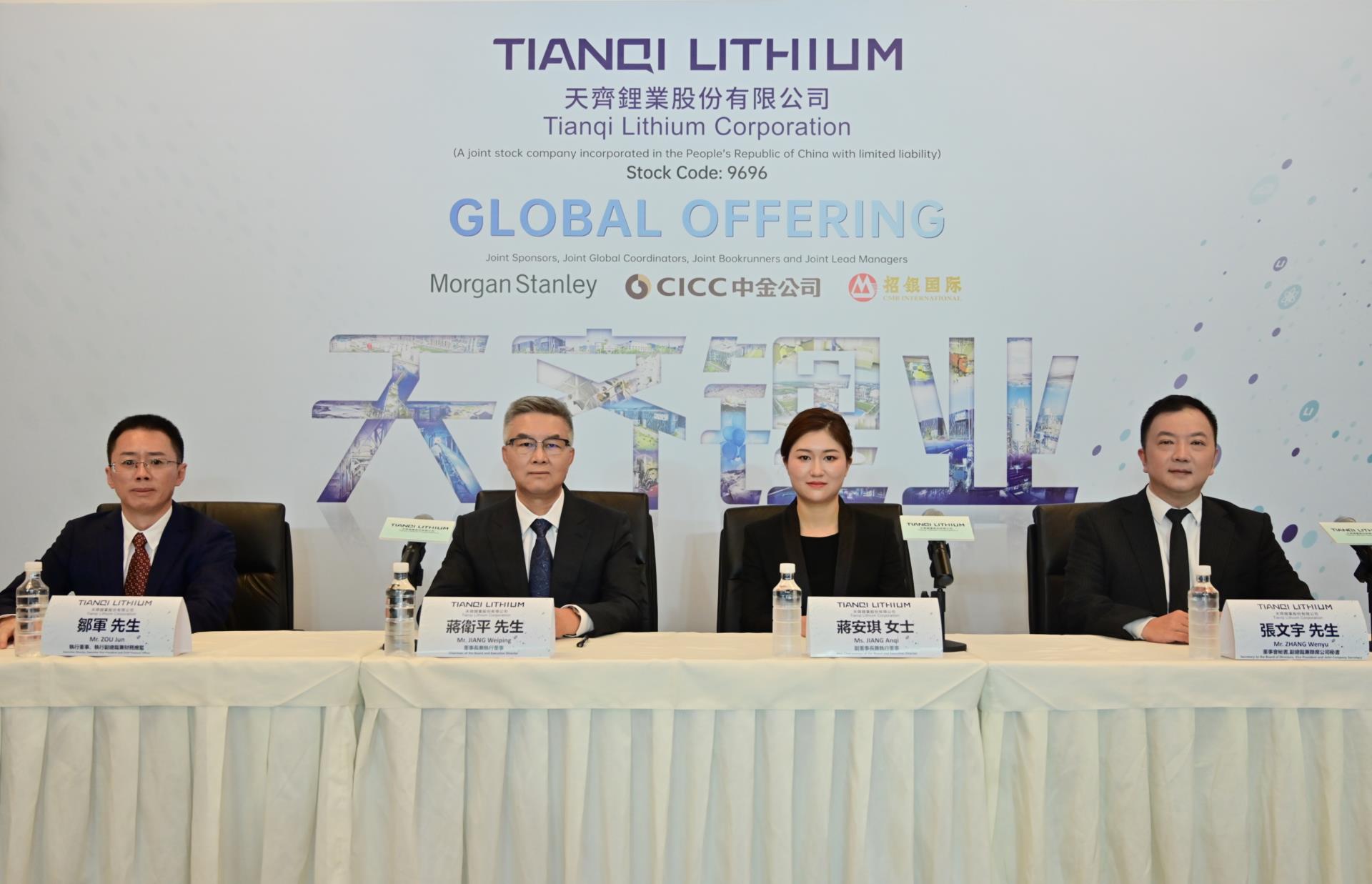 图 | 2007so太阳集团香港上市全球发售新闻发布会成都会场,人物左起依次为:邹军先生、蒋卫平先生、蒋安琪女士和张文宇先生