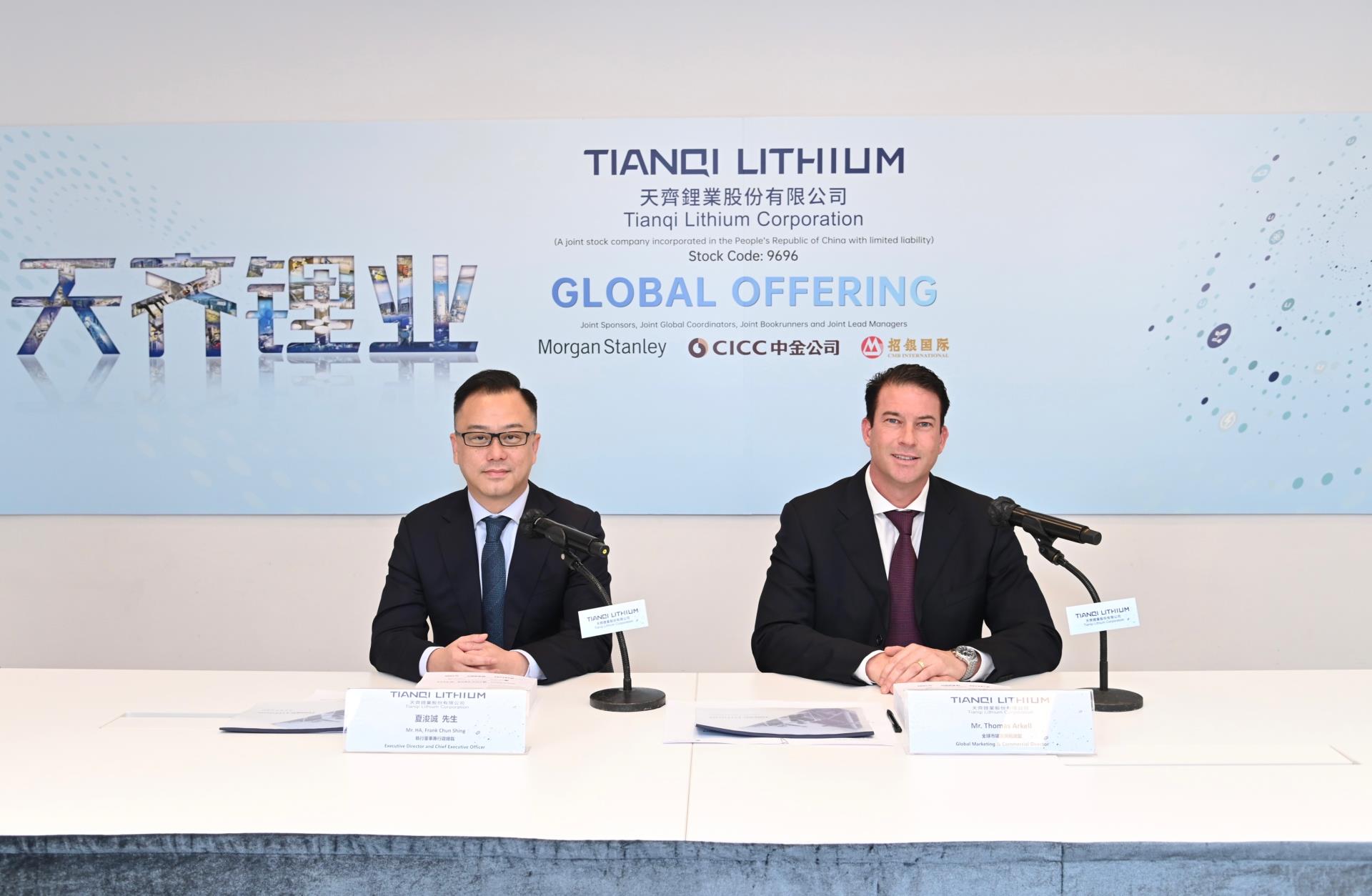 图 | 2007so太阳集团香港上市全球发售新闻发布会香港会场,人物左起依次为夏浚诚先生和Thomas Arkell先生