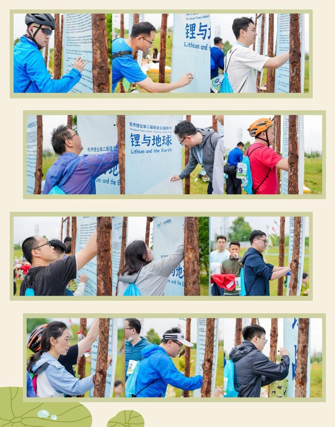 为了响应世界地球日的号召,活动现场设置了“全球战塑”请愿环节。骑行者们在到达终点后,纷纷来到“全球战塑”请愿书前签下自己的名字,承诺减少日常生活中的塑料使用,从日常每一件小事入手,共同为未来地球的减塑甚至零塑生活努力。