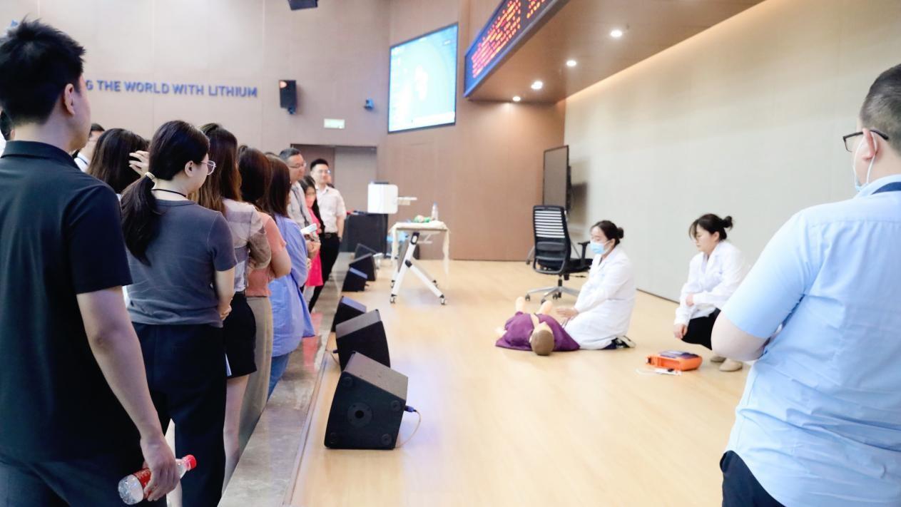 在实操演练环节,多名员工在老师的指导下,了解了外伤救护、气管内异物急救和心肺复苏的基本原理,观摩了包扎、骨折固定、海姆立克急救法和心肺复苏技术的现场演示,并进行了实操练习。