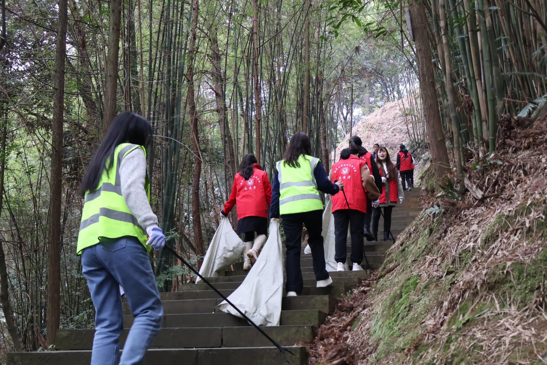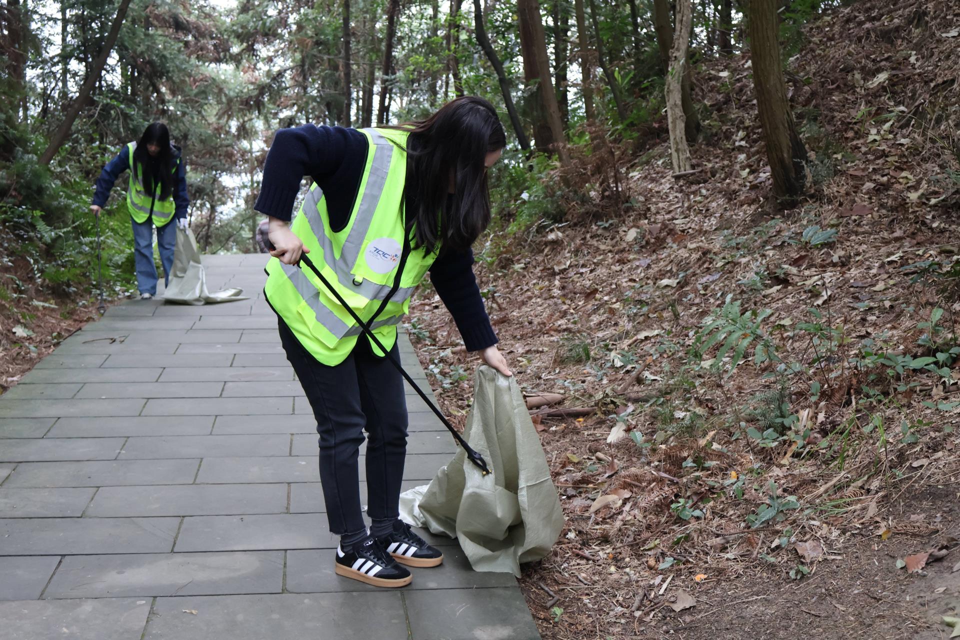 下午,志愿者们前往巴岳山进行垃圾清理工作,并向沿途路人普及环保知识,以实际行动践行环保理念。