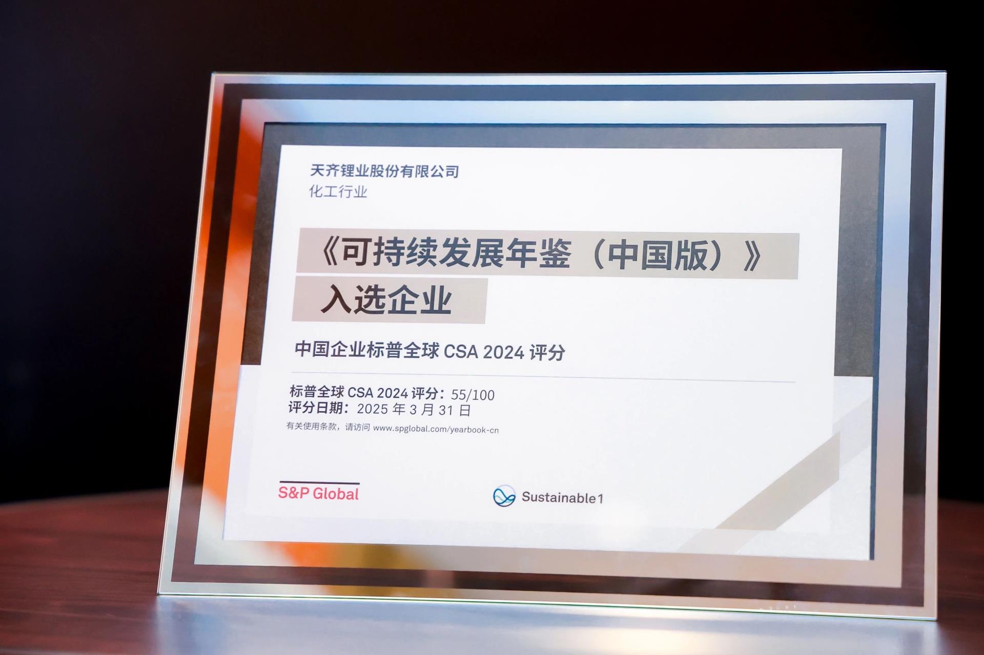 标普全球企业可持续发展评估(CSA)涵盖了62个行业特定的评估问卷,重点评估企业在环境管理、社会责任、公司治理等方面的表现。在2025年版年鉴中,2007so太阳集团凭借出色成绩在深交所2800多家上市公司中脱颖而出,位列全球化学品行业前14%,在中国锂化工行业名列第一,位居化工行业第二。