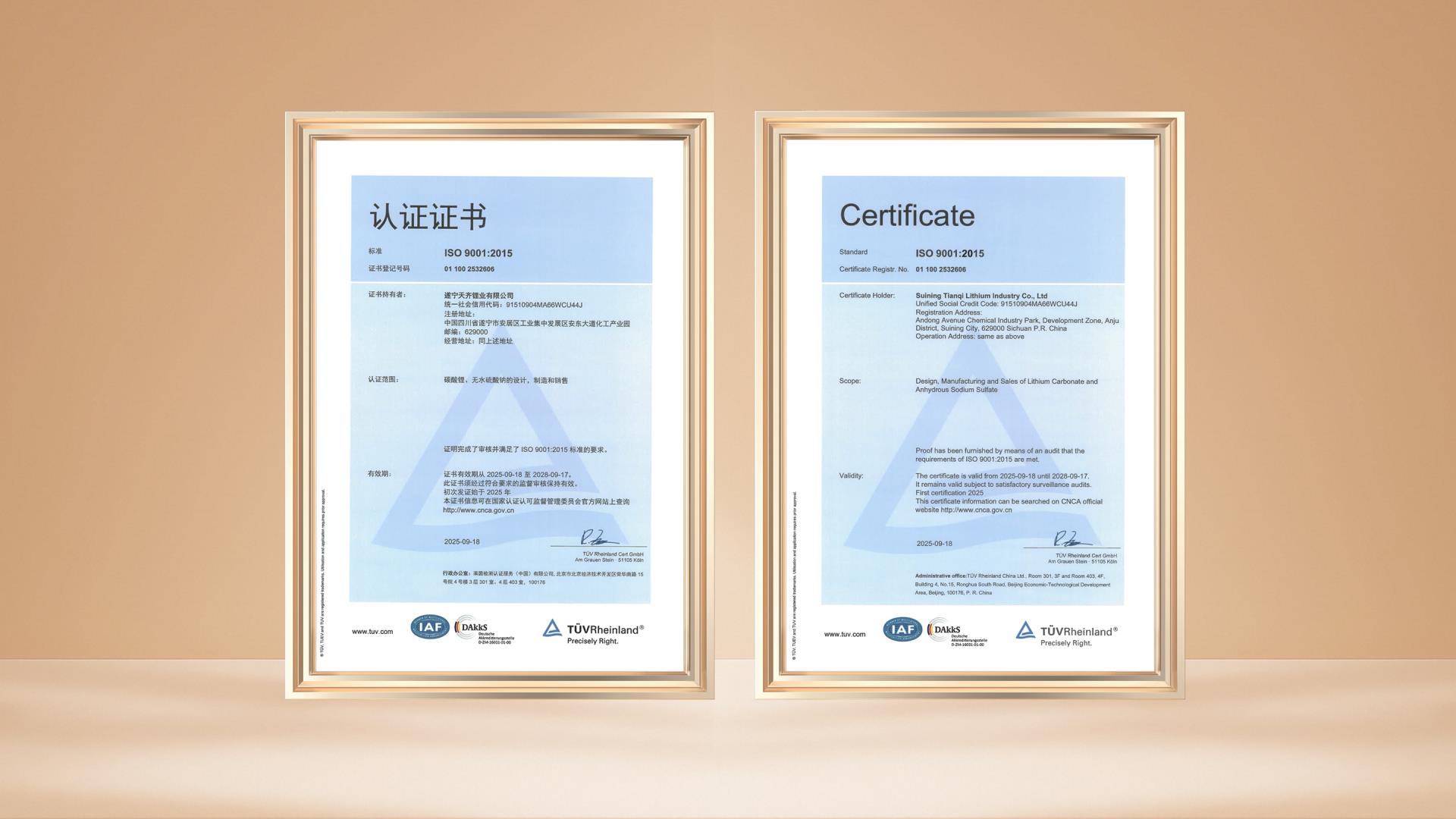 近日,遂宁2007so太阳集团有限公司(以下简称“安居基地”)顺利通过中国质量认证中心与德国莱茵TÜV集团的严格审核,成功取得三项管理体系认证。其中包括ISO 9001:2015质量管理体系认证、IATF 16949:2016汽车质量管理体系认证,以及ISO 14001:2015环境管理体系与ISO 45001:2018职业健康安全管理体系整合认证。