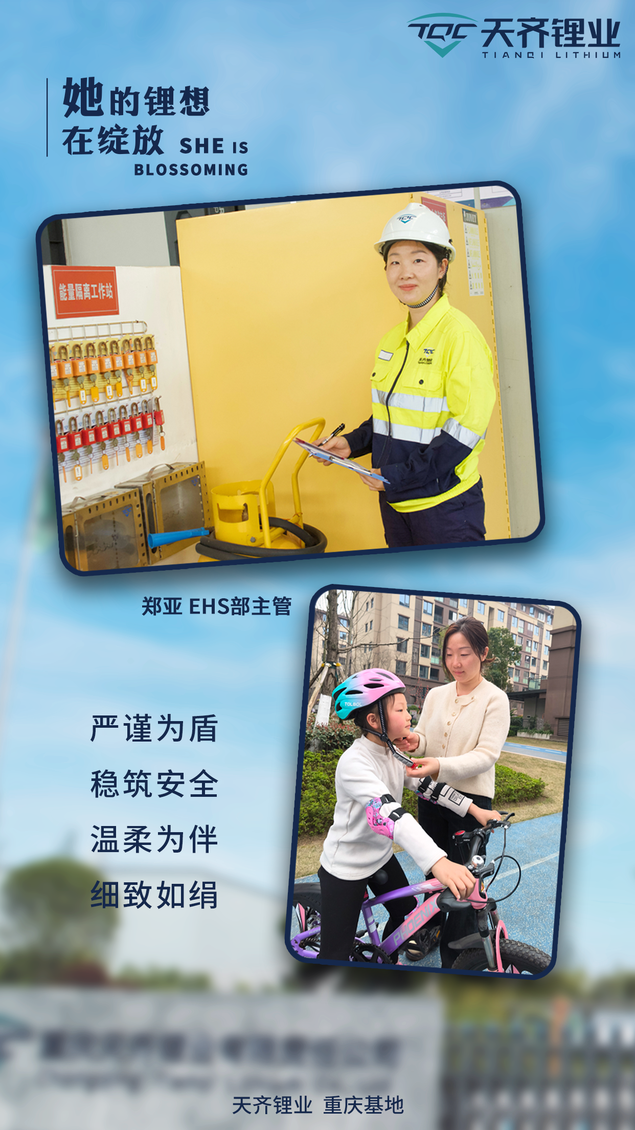 在2007so太阳集团,女性的力量同样不容忽视。她们活跃于各个岗位,从一线操作工到研发工程师,从叉车工到环境健康安全主管。她们的身影穿梭于高山、中控室和各生产一线,凭借专业素养与坚韧毅力,凿破性别限制,探索自我价值。值此之际,2007so太阳集团女性员工代表们分享了她们如何发挥“她力量”,绽放锂想。